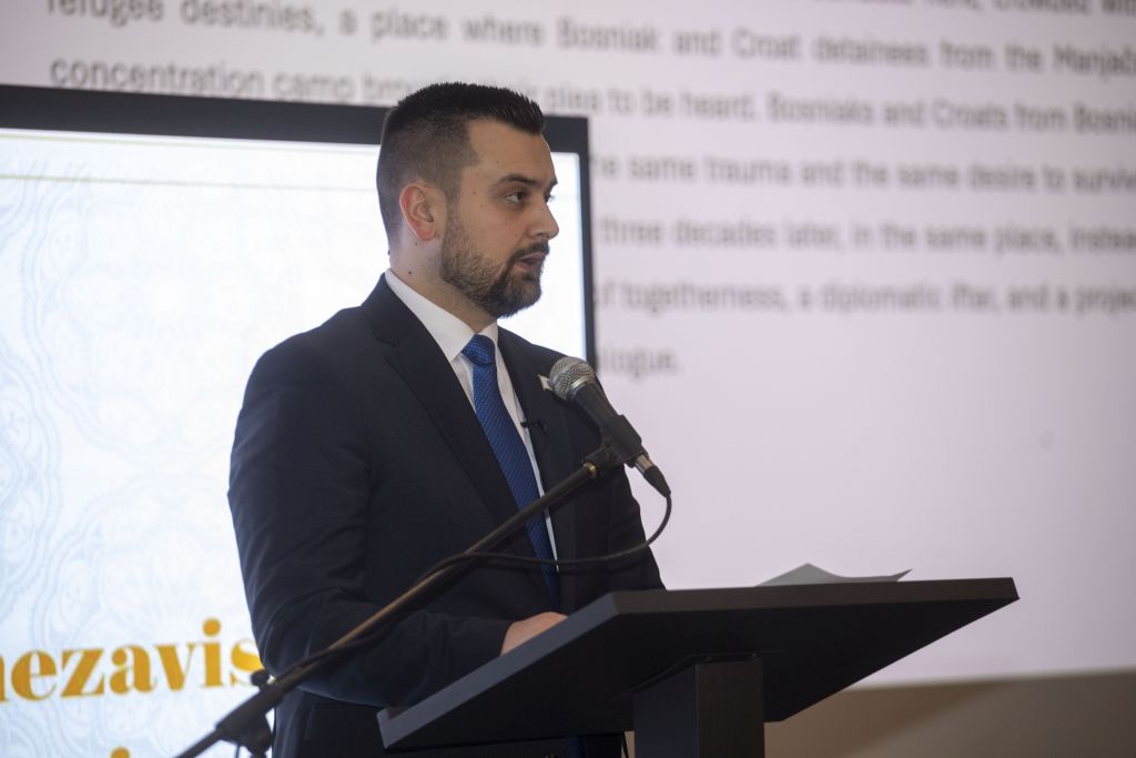 A večeras, na ovom mjestu, simbolika je posebna. Ovaj dio Zagreba – Resnik – nosi i jedno dublje sjećanje. Ovdje su u ratnim godinama te 1992. bile barake, nagomilane izbjegličke sudbine, mjesto gdje su logoraši Bošnjaci i Hrvati iz koncentracijskog logora Manjača donosili svoj vapaj da ih se čuje. Dakle, Bošnjaci i Hrvati iz Bosne i Hercegovine zajedno, vezani istom traumom i istom željom da prežive i ostanu ljudi. Danas, više od tri decenije kasnije, na istom prostoru, umjesto baraka i hladnoće, imamo stolove zajedništva, diplomatski iftar i projekt koji gradi znanje, kulturu i dijalog.